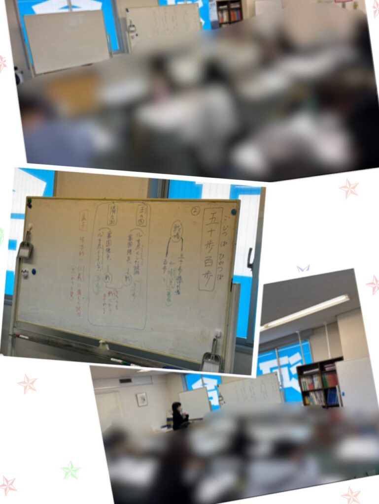 国語のスクーリングが行われました_φ(・_・古事成語『五十歩百歩』どういった出来事に由来してできた言葉なのか、先生が丁寧に説明して漢文を読む楽しさを教えてくださいましたo(・x・)