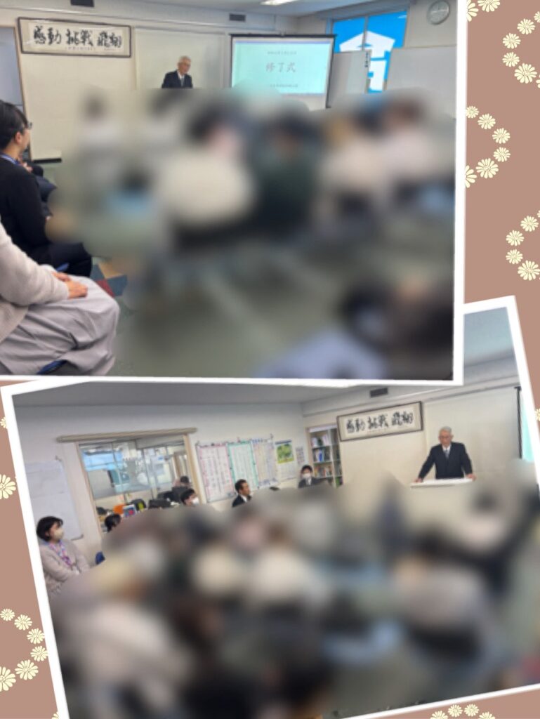 2026年3月19日 / 最終更新日時 : 2026年3月19日 seikatanabe 学校行事 修了式がおこなわれました 修了式が行われました(๑・̑◡・̑๑)校舎長からは「修了式」の意味、先日行ったフリーマーケットの振り返りなどのお話がありました。今日は担任別に分かれて、各担任の先生との時間を過ごして一年を締めくくりましたϵ( ‘Θ’ )϶ \ 最新情報をチェック / FacebookXBlueskyHatenaPocketCopy コメントを残す コメントをキャンセルメールアドレスが公開されることはありません。 ※ が付いている欄は必須項目ですコメント ※ 名前 ※ メール ※ サイト 次回のコメントで使用するためブラウザーに自分の名前、メールアドレス、サイトを保存する。 Δ